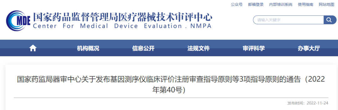 【CMDE】基因测序仪临床评价注册审查指导原则发布